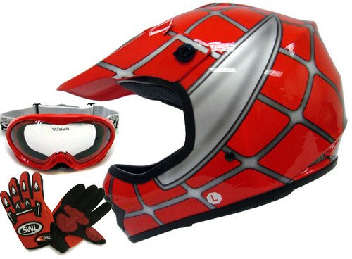 The best products with kids atv helmetYouth Red Spider Net Dirt Bike Atv Motocross Helmet W/goggles/gloves (Large) feature